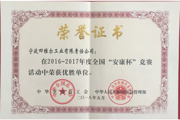 Guangdong Hongtu Subsidiary Ningbo Siwei was awarded the winner of the 2016-2017 National “Ankang Cup” Competition