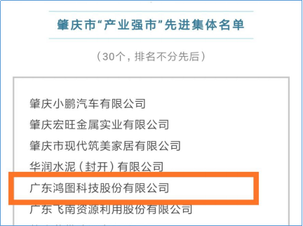 The city of Zhaoqing adheres to the guidance by President Xi Jinping's Thought on Socialism with Chinese Characteristics for a New Era, deeply studies and implements the spirit from the speech and important instructions delivered by the General Secretary of CPC Central Committee and earnestly implements the "1+1+9" work arrangement by Guangdong Provincial Party Committee and Guangdong provincial government and the gist of instructions delivered by the secretary of Guangdong Provincial Party Committee on Zhaoqing government's work. In the principle of "emancipating the mind, integrating to the east and connecting to the west, strengthening the city through industry and rejuvenating the city through solid work", the city of Zhaoqing constantly carries out the "366" project for industrial development, the "1133" project for innovation-driven development and "611" project for modern agricultural development. As such new progress has been made in a wide range of work in industrial construction. Therefore, all enterprises being commended this time are key enterprises of Zhaoqing City in various sectors. Awarding the honorable title "Zhaoqing Powerful Industrial City Advanced Collective" to Hongtu Technology is a full identification and recognition of the company's contributions to the local economic development by the government of Zhaoqing City.