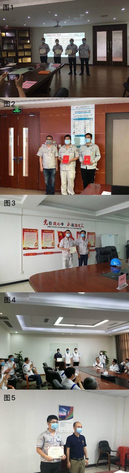 1.压铸(本部)总经理莫建忠(右一)与“十佳员工”温文彬(右四)、陆淳佳(右三)、梁星海(右二)合影