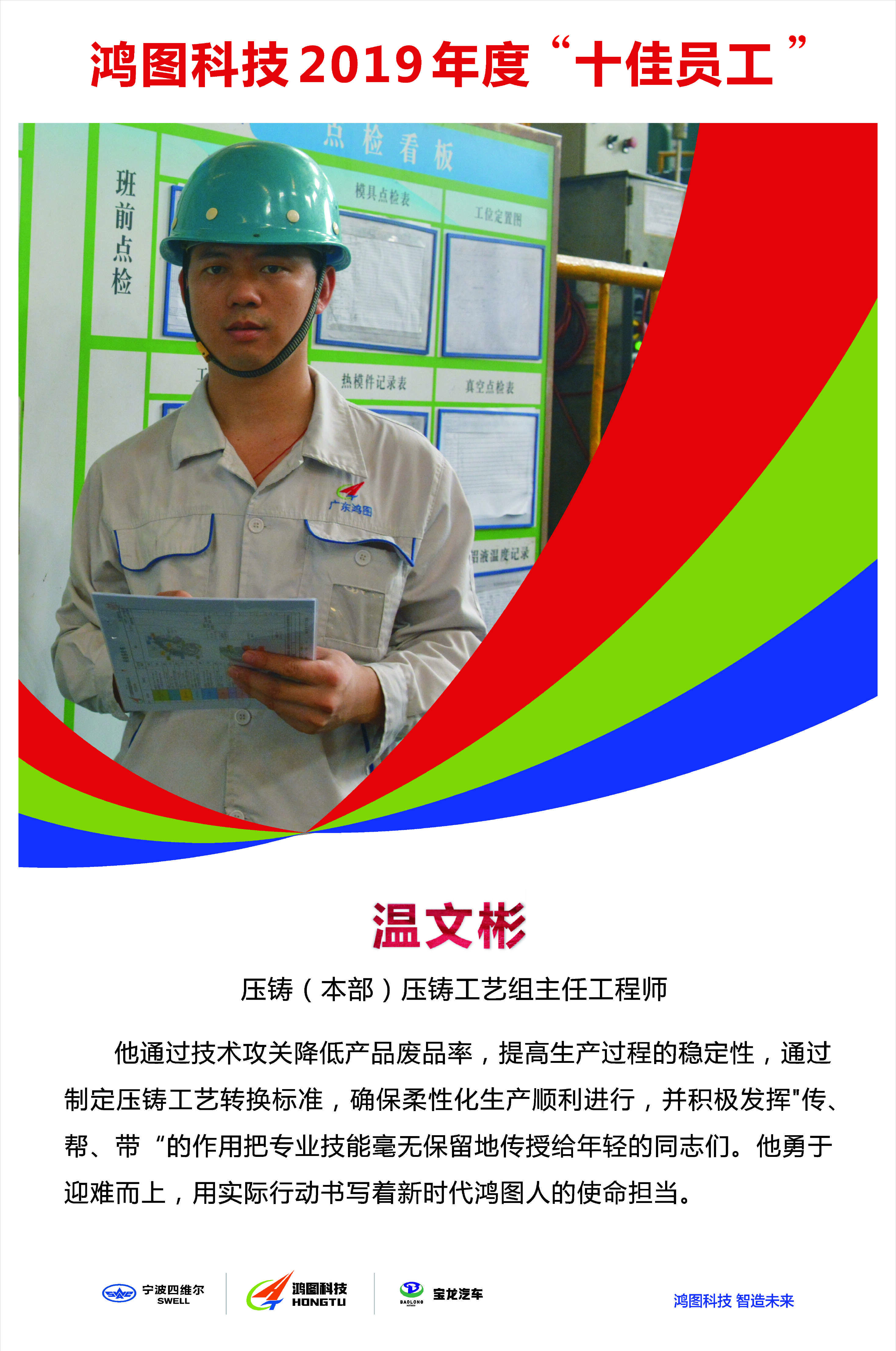 作为压铸(本部)压铸工艺组主任工程师,温文彬主要从事压铸生产工艺的研究和开发,致力于提升压铸产品质量提和压铸生产效率。入职以来,他曾担任过压铸工艺员、工艺组长、产品工程师、主任工程师等职务,从一名普通大学生慢慢成长为压铸技术骨干。