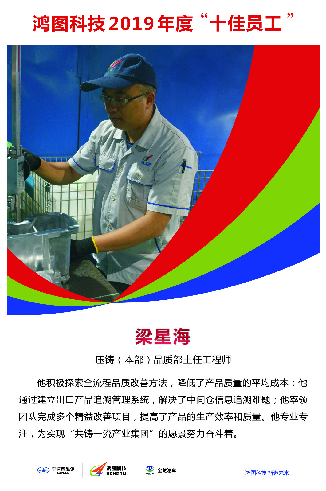 作为压铸(本部)品质部主任工程师,梁星海现在主要负责FCA及广汽菲克项目品质管理工作。入职以来,他曾担任过品质工程师、品质组组长、主任工程师等职务。工作中,他努力为客户创造有品质、有价值的产品和服务,获得了多次嘉奖。