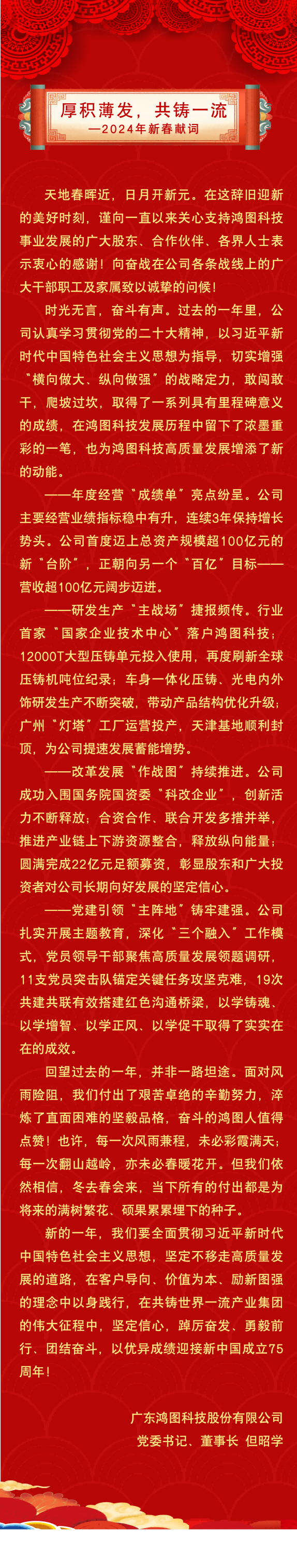厚积薄发,共铸一流——2024年新春献词